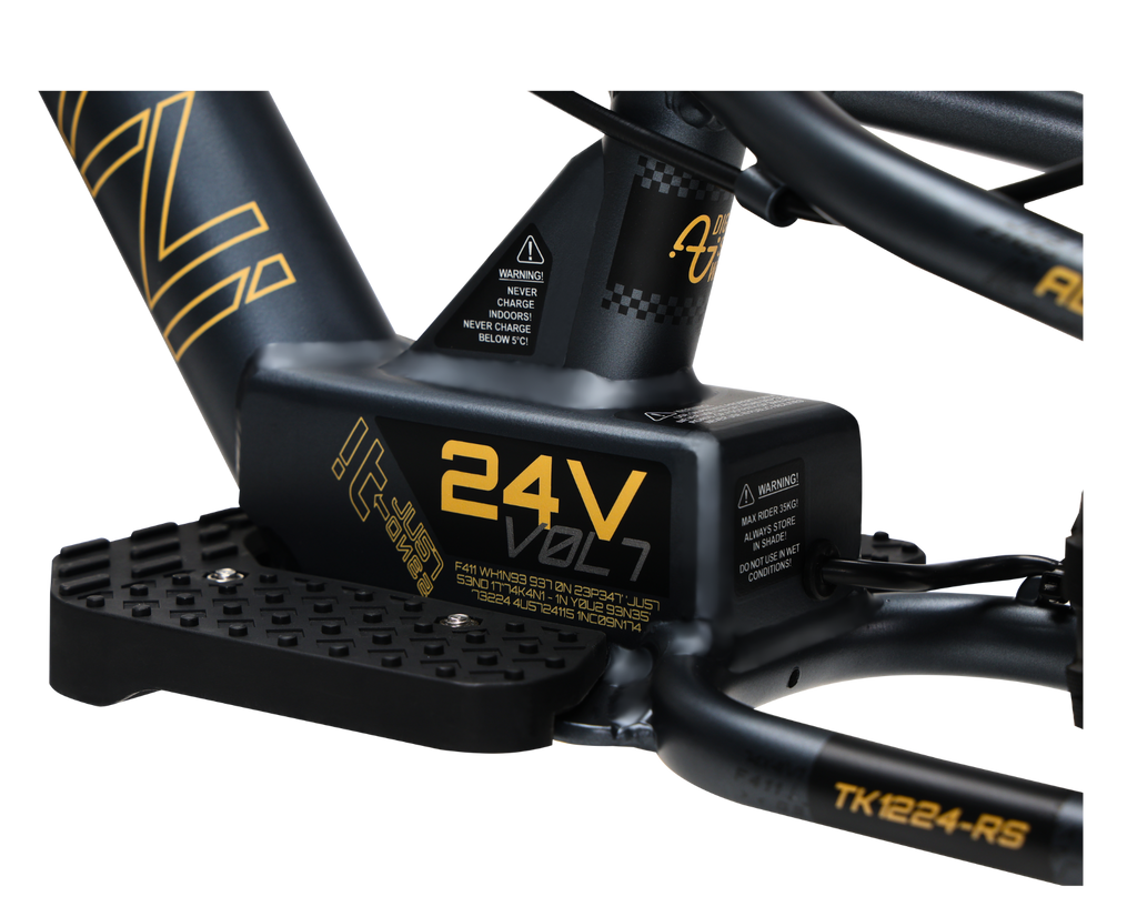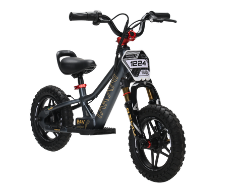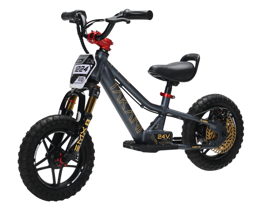 You can also equip the TK1224-RS with some exciting accessories of it's bigger version, the TK1652-RS. For example, the larger footrest, increased height handlebars, optional full MX throttle can be added to this little ripper and extends another 1-2 year ride time out of this bike. Due to its clever design all job can be completed in minutes by busy parents.