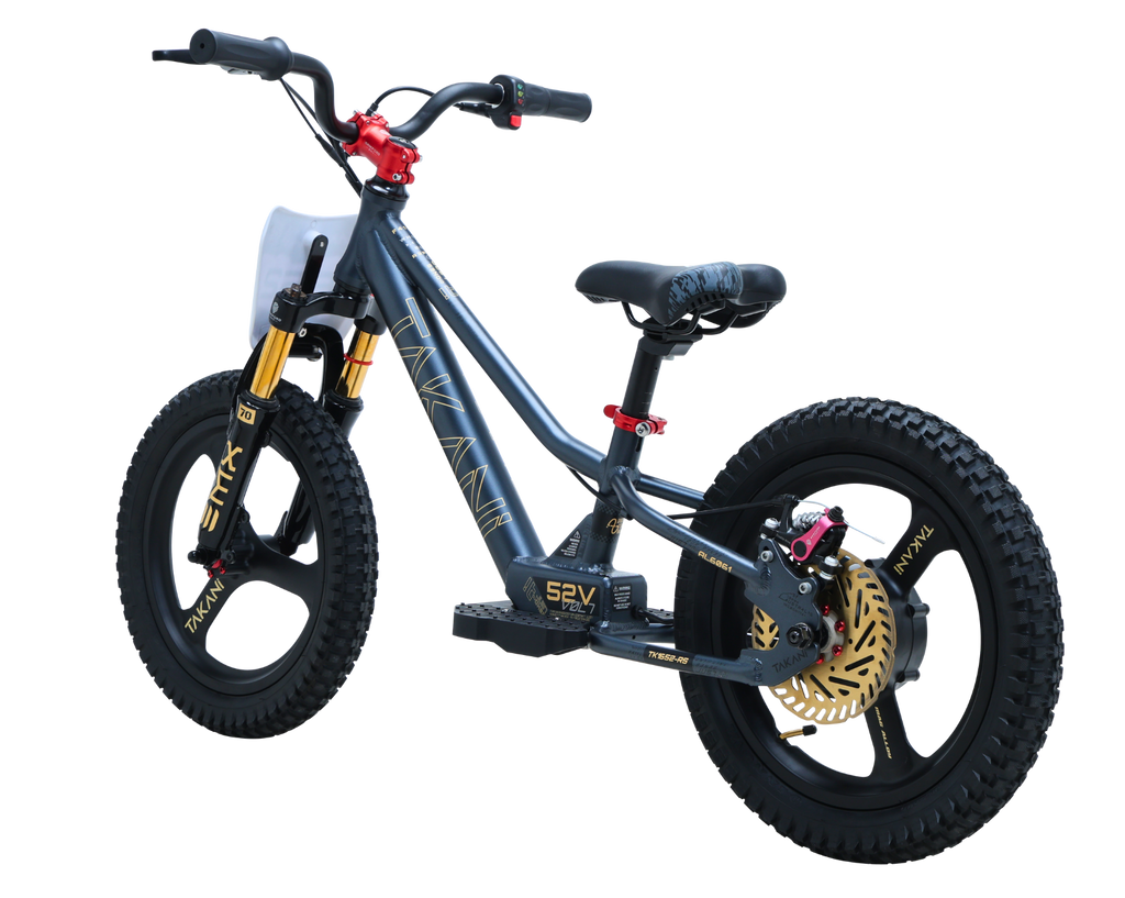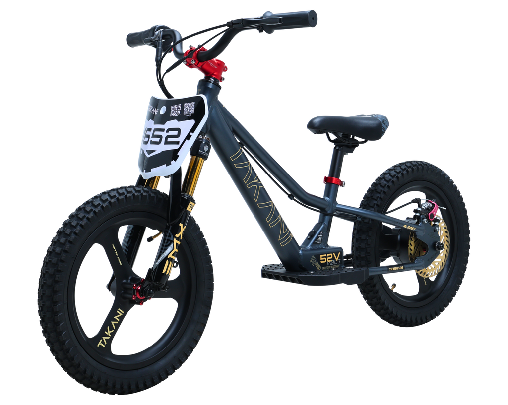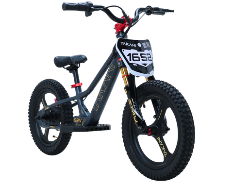 Riding the TAKANI 16-inch electric balance bike is a fun outdoor activity for kids. It is a great way to support young riders to develop balance, motor skills, throttle control, brake feeling and hand-eye coordination. A perfect first step before progressing with a traditional dirt bike....or just to 'zoooom' around in the backyard.